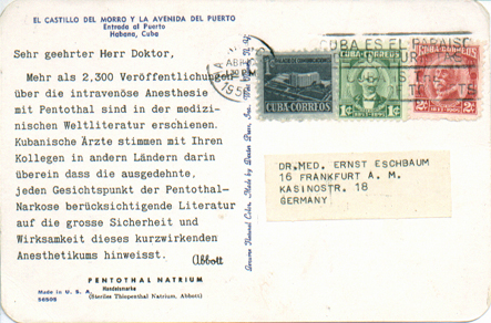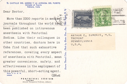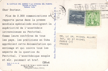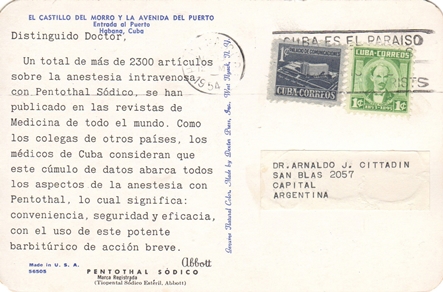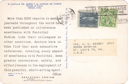 Card 038- Cuba 1956 El Morro Castle (Note- some postmarks used 1954 year plug in error)