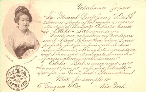 illustration of a Japanese woman) to send patent medicine advertising to a physician