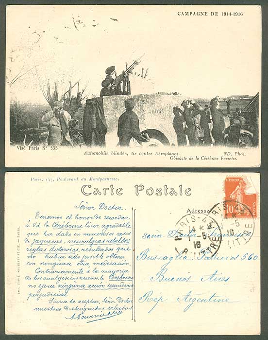 1914-1916 Campaign, Anti-aircraft position, postmarked May 1, 1916, card number 535