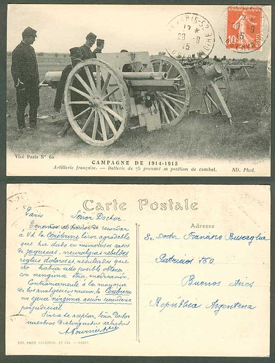 1914-1915 Campaign, Artillery battery, postmarked September 28, 1915, card number 60