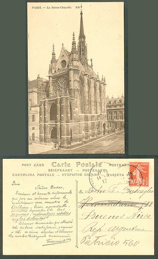 Paris- St. Chapelle, postmarked August 14, 1912