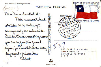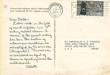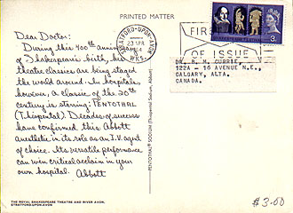 A wealth of philatelic possibilities can be found in Abbott "Dear Doctor" postcards. Here is another!