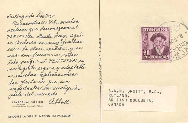In his further investigations of type settings of differing language cards, he has now found what might be a unique anomaly--a card in English mailed to a non-English language country--France. Even more interesting is that while both cards are written in English, their messages are written in two different settings.