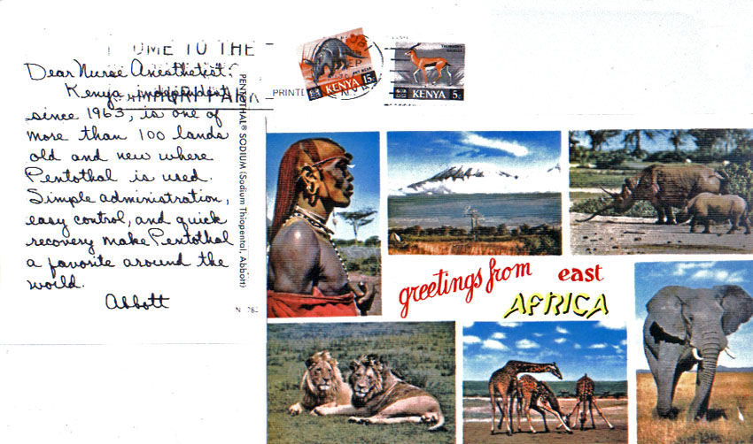 Figure 2. Kenya “Greetings from East Africa” Nurse Anesthetist Postcard (#82n).