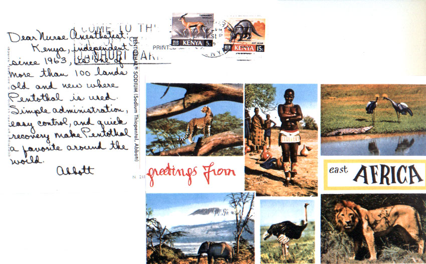 Figure 1. Kenya “Greetings from East Africa” Nurse Anesthetist Postcard (#82n).