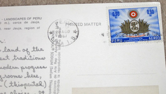 This card is now listed as type 132A on the master Pentothal listing, described as "Landscapes of Peru near Jauja (sheep grazing)". The postmark appears to be dated August 25, 1967.